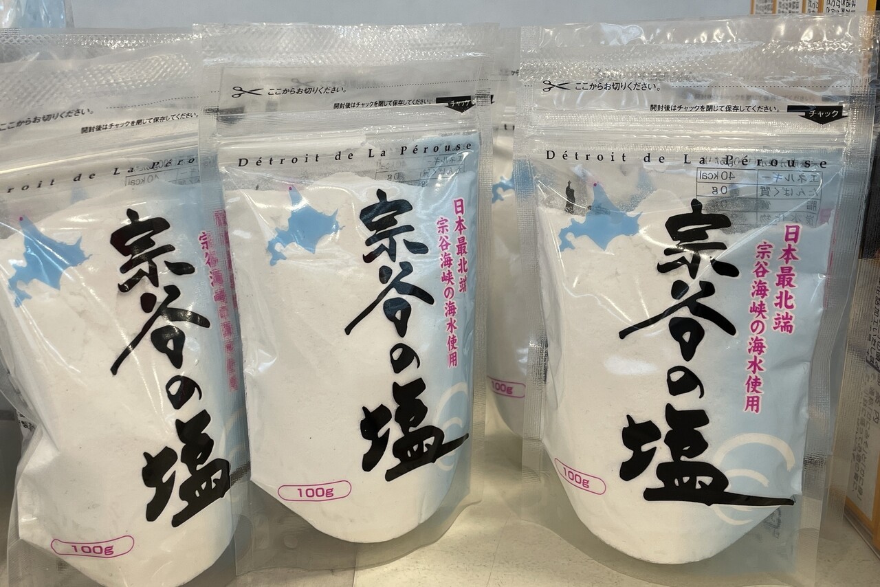 「宗谷の塩」も、道北らしい食材。日本最北端、宗谷海峡の海水を使用する塩は、水分を蒸発除去したにがり100%の自然塩で、マグネシウム、カリウム、カルシウムなどのミネラル類を多く含むとのこと。口当たりもまろやか。