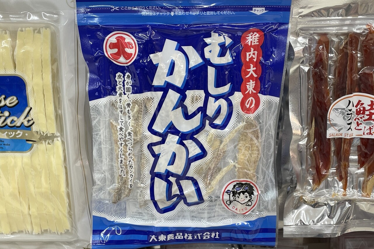 北海道稚内市のメーカー、大東食品の「むしりかんかい」は、道北を代表するおつまみ。通常は固くて骨が多く、食べづらかったカンカイの皮と大骨を外し、食べやすく加工されている。