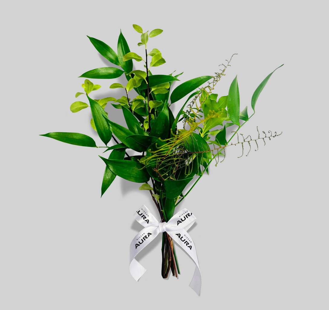 「AURA FOREST DOME」で「オーラ」の癒しの空間を体験した人には、自宅でも余韻にふけってほしいという意図で、ハッシュタグ「#日産オーラに浸るひととき」をつけてSNS投稿した人の中から先着200名にオリジナルブーケが贈られるプレゼント企画まで用意されている。