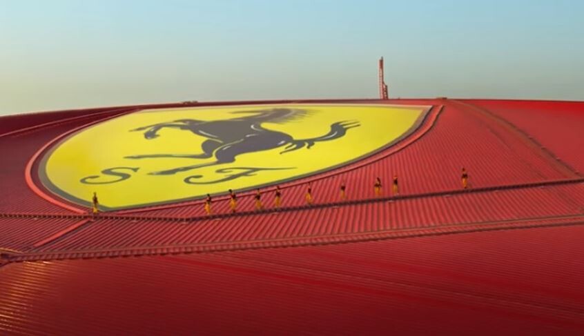 注目の「フェラーリワールドアブダビルーフウォーク」(Ferrari World Abu Dhabi Roof Walk)は、約20万平方メートルの象徴的な巨大屋根の上を、フルボディハーネスを装着して歩きながら、世界最大のフェラーリロゴに接近するスリリングな体験ができる。