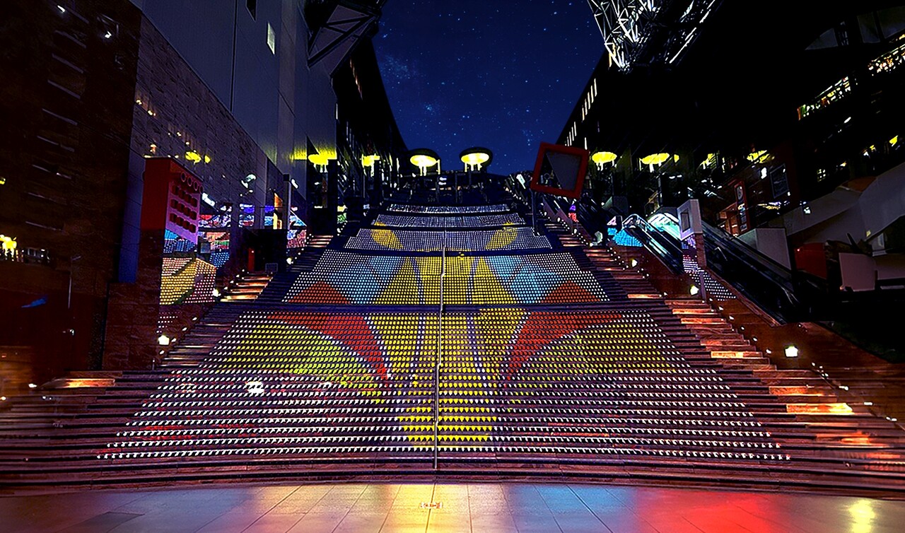 京都駅ビルの大階段177段のうち125段に、LED約1万5千個がちりばめられ、6種類の馬のキャラクターが階段をかけめぐる。競走馬のスピート感が体感できる演出となり、迫力が体感できる。また、イベントスペースには、高さ約2メートルの「うまぬいぐるみ」のフォトスポットも設置される。