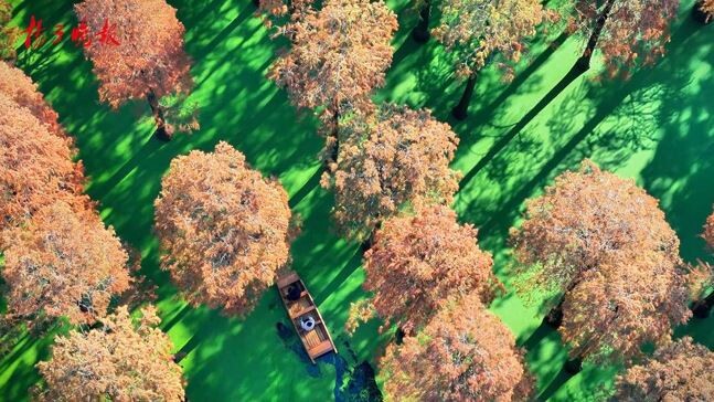 中国でおそらく世界で一番美しいかもしれない紅葉スポットを発見したのでご紹介。江蘇省の揚州市にある「洋湖湿地公園」(ようこしっちこうえん)は、数千本のメタセコイアが生い茂り水上に絵画のような光景を作り出している自然公園。水面が浮草で覆われた緑じゅうたんの中を、船を漕ぎながら水上森林に入り込むことが出来る人気スポット。特に10月後半〜11月頃が紅葉のベストシーズンを迎え、初冬にメタセコイアの紅葉が色付き始める絶景となり、色とりどりに染まったコントラストが映える美しい木々の間をボートで周遊する。これから中国の江蘇省へ旅行を検討されている方は、揚州市の中心部から車で1時間にある洋湖湿地公園の紅葉はいかがでしょうか?
