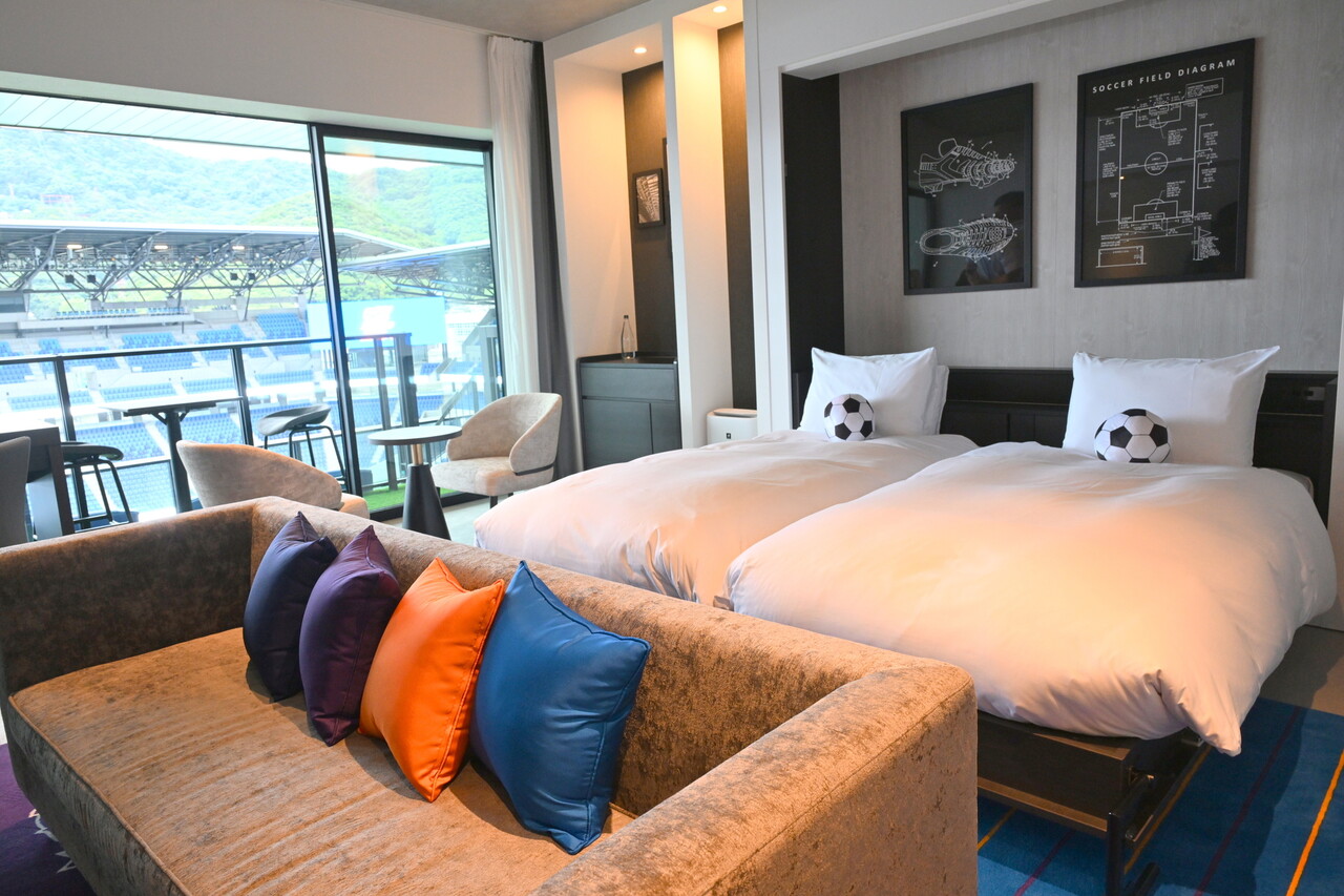 日本で初めてとなる、サッカースタジアムビューホテル。サッカーが好きなら、一度はぜひ泊まってみたい。