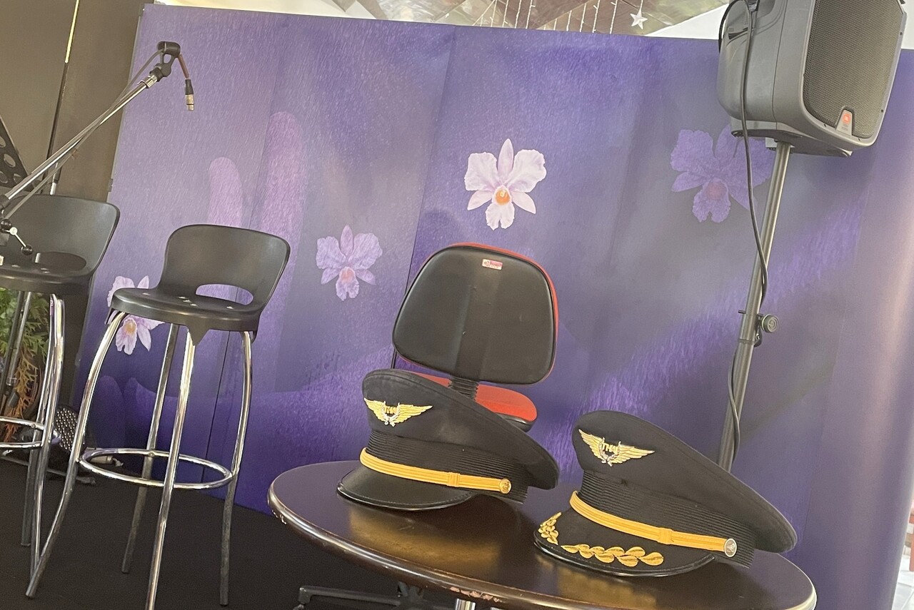 食堂の中央に、ステージもあった。パイロットの帽子が置いてあったところ、ここでなにかのパフォーマンスをするのか気になった。