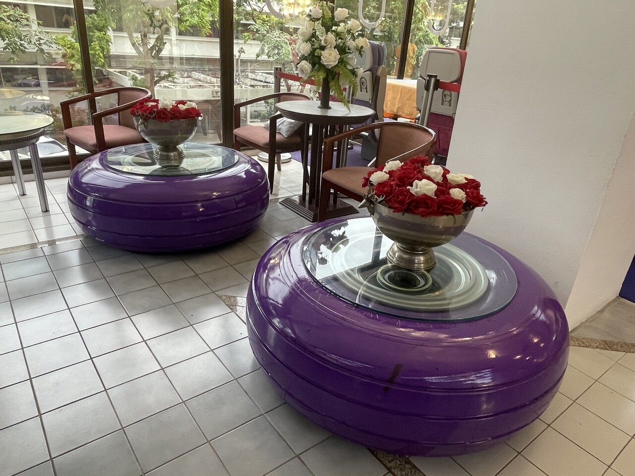 ここは、タイ国際航空の社員食堂、とはいえ、一般利用も可。ブッフェスタイルの食事、カフェメニューもある。社員が打ち合わせで使ったり、一般人が休憩していたり。