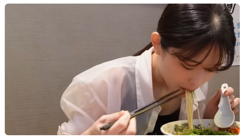 そして動画の内容は…ただただひたすら葱ラーメンなどのメニューを食べていくという動画。それ以上でもそれ以下でもない動画はただただ癒し。