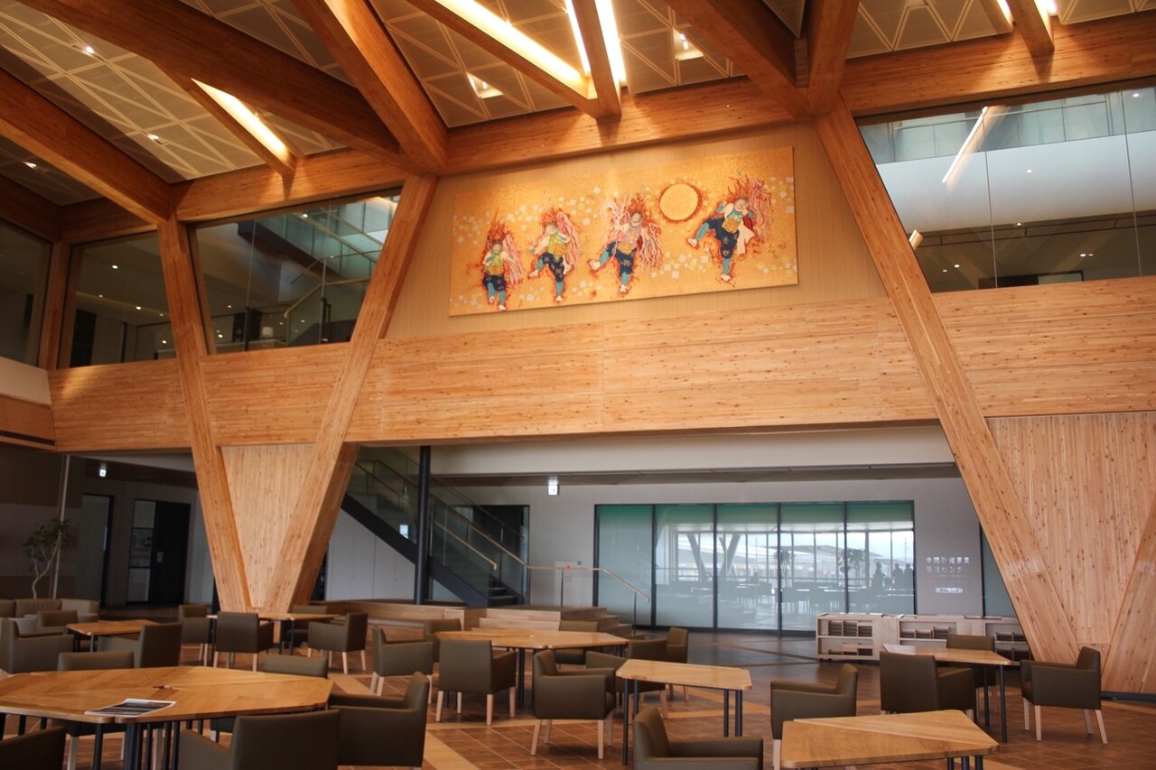 そして、JR大野駅から見える場所に3月15日にオープンした産業交流施設「CREVAおおくま」は、復興を象徴するような建物で、木材を使用した外観、外光をうまく調節して入れるように設計された長い庇、外気を取り入れ夏は涼しく、冬は暖かい換気システムの導入、そして屋根には自前で賄えるほどの太陽光の設備が備わっている最新の建物です。