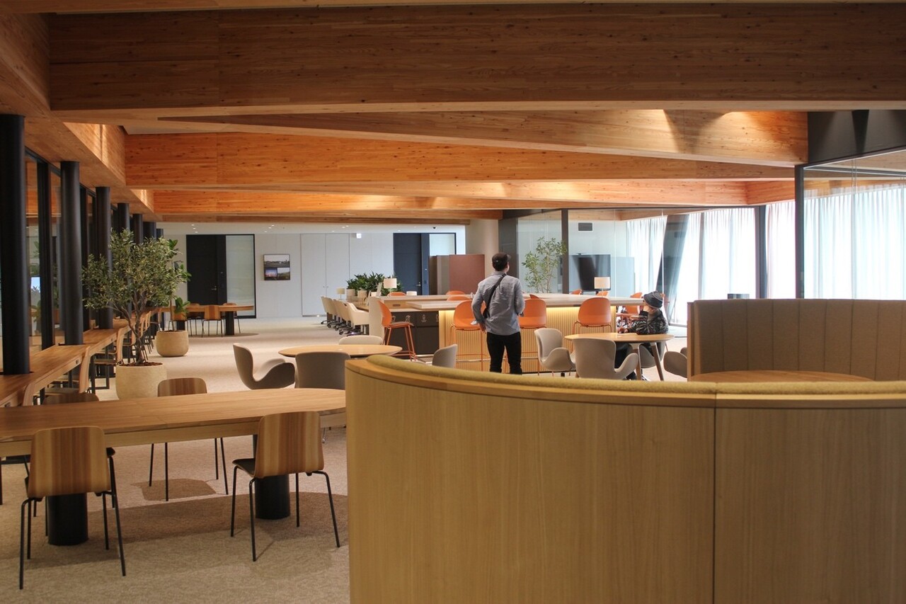 「中間貯蔵事業情報センター」では、中間貯蔵事業、除去土壌等の再生利用などを、施設の中にいるようにバーチャルシアターで見ることができ、館内ツアーも実施しています。そのほか2〜3階には、「福島県原子力安全対策課」、「大熊るるるん電力株式会社」など、約30の公共施設や会社が入居しています。