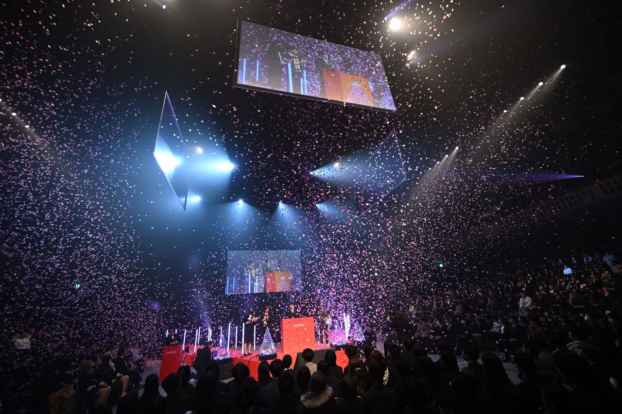 だが、これは序章だった。最後の謎解きは会場全員が挑戦することになる。それは爆弾の赤を切るか、青を切るか。会場全体がスマホで色を示して答えを示す。そして、無事ゲームはクリアーされた。