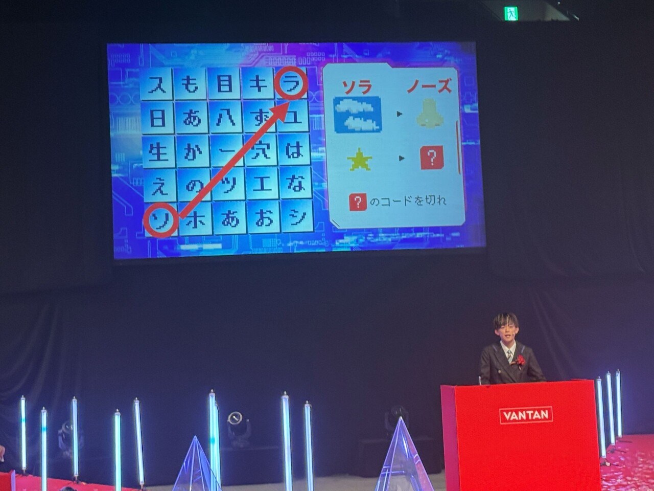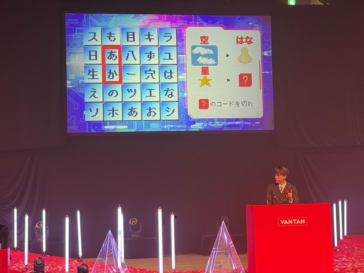 だが実はどちらの答えにも辿り着く解き方がある仕様なのが明かされると会場から拍手が生まれた。なぜどちらの答えも正解なのか。それは、クリエイターになれば、どちらか正解かわからない葛藤と数え切れないほど向き合うことになる。だがどちらが正解というわけでもない。なので、自分の進みたい道を選ぶことが大事だというメッセージが込められた謎解きだった。