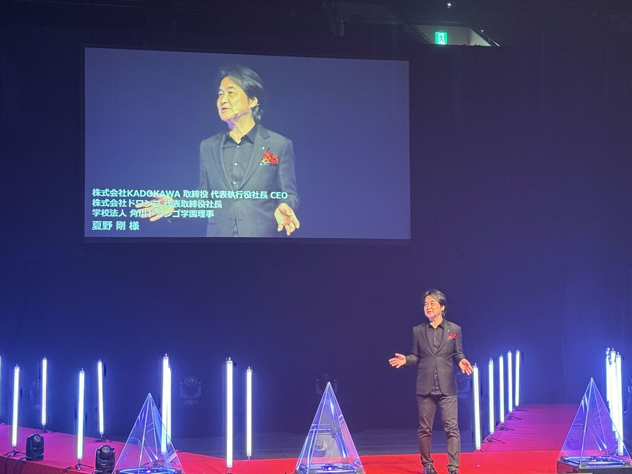 もちろん、入学式のすべてに謎が仕組まれているわけではない。ゲームアカデミー以外にもさまざまな学科がバンタンにはある。最初は、KADOKAWAグループ代表であり、角川ドワンゴ学園理事を務める夏野剛氏による祝辞があった。