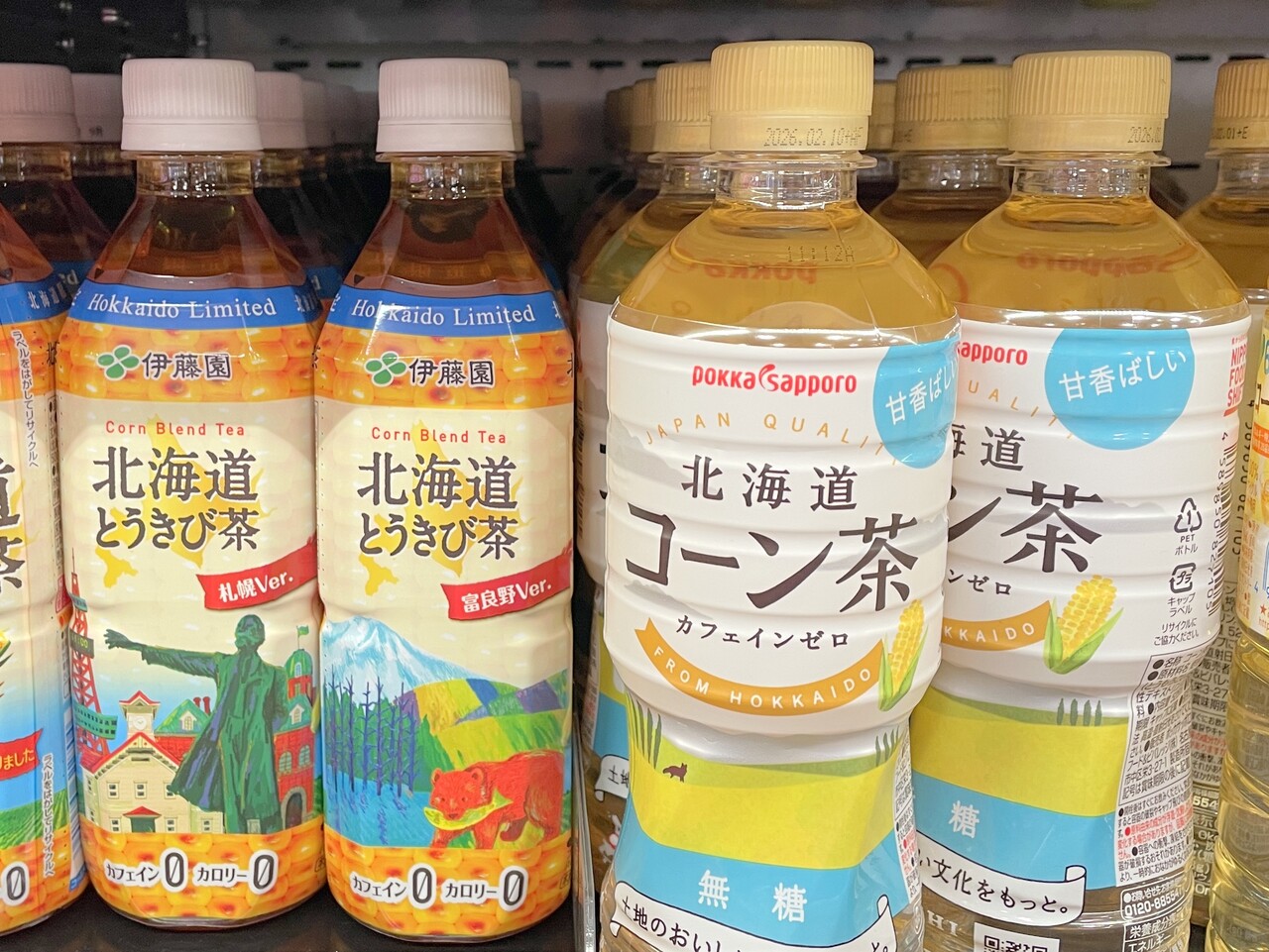 北海道らしいペットボトルのドリンクがいくつかある。ガラナが有名だが、とうもろこしを使うノンカフェインのコーン茶も定番だ。