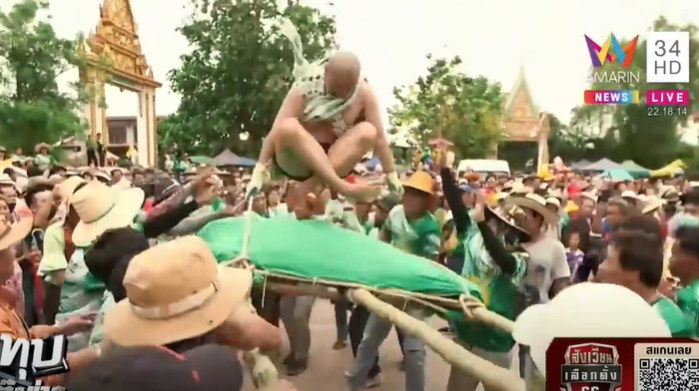 世界には多くの試練が存在するが、タイから過酷でユニークな試練を発見したのでご紹介。毎年5月上旬、タイのチャイヤプーム県フーキアオ郡ノントゥム街道ノンサラ村で行われる、村から出家する若者を担架に乗せて激しく揺さぶるユニークな伝統行事。直訳で「残酷な僧侶の行列」と称される、世界で唯一この村で何世代にも渡って受け継がれる忍耐の試練である。今年20歳を迎えた村の若者たちが集団で出家をするときに、村人たちが竹のイカダのような担架に乗せた若者を担いで村中を練り歩く。苦難を耐え抜く忍耐力があるかを試すため、若者を乗せた担架を神輿のように激しく上下に揺さぶるというクレイジーなもの。途中で担架から落ちてしまうと出家できなくなってしまうので、若者たちは両側のロープに掴まりながら必死に耐え抜かなければならない。激しい揺さぶりに途中で何度も落ちそうになるが、両親の恩に報いるため若者たちは過酷な試練を乗り越えようと頑張る。もう過去に何万回も探しているタイだったが、世界にはまだ知らないネタがたくさんあるものだ。