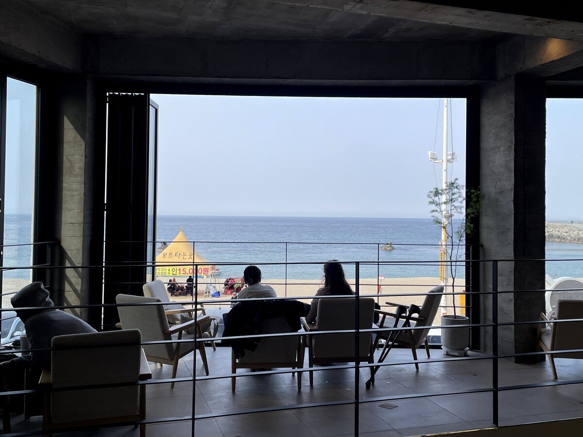 KTX江陵駅から、車で約15分。海岸沿いに「安木(アンモク)カフェ通り」がある。その名の通り、安木海水浴場のそばにカフェが何軒も立ち並ぶ。中には、日本でもおなじみの「スターバックス」もある。