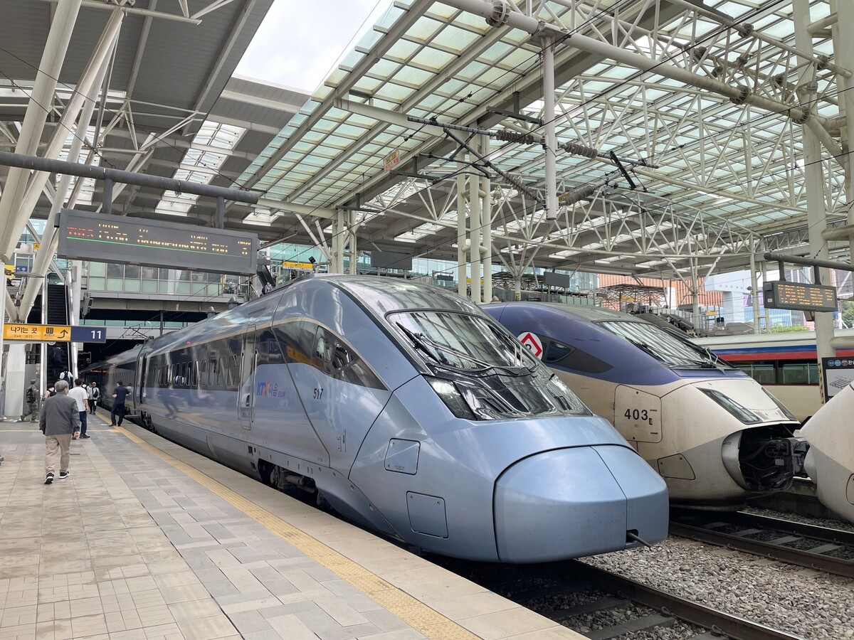 KTXの車両はいくつかある。これは「韓国鉄道公社150000系電車」で、愛称は「KTX-イウム」と言われ、2019年に導入されたという。最高運転速度は「260 km/h」とのこと。