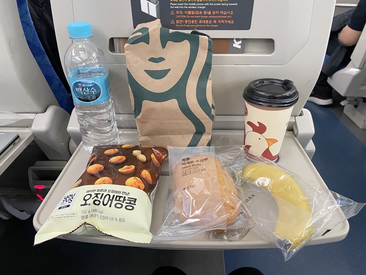 韓国の地下鉄やバスなどは飲食禁止だが、KTXは可能。ソウル駅には弁当やテイクアウト向けの食料を販売する売店やコンビニエンスストアがたくさんあった。テーブルも広かった。