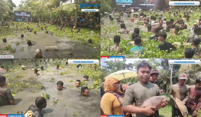 世界にはユニークなイベントがたくさんあるが、インドネシアから驚きの行事を発見したのでご紹介。インドネシア西ジャワ州パンガンダランの村々で、毎年10月〜11月の時期に開催される魚捕り大会「ンゴベン・バロン」(Ngobeng Balong)。村人たちが一斉に池に入って素手で魚を捕まえるイベントで、西ジャワ州の中でもパンガンダランの住民たちの間で継承されている伝統行事。最も大きな魚を捕獲した人に賞金が贈られるため、数百人の村人たちが池の中から素手で魚を捜索する。池に生息するコイ・ナマズ・ライギョ・ティラピアなど、より大きな魚を捕獲しようと池に潜って魚を奪い合う。泥だらけになりながら素手で魚を捕獲するイベント、興味のある方は是非チェックしてみてください。