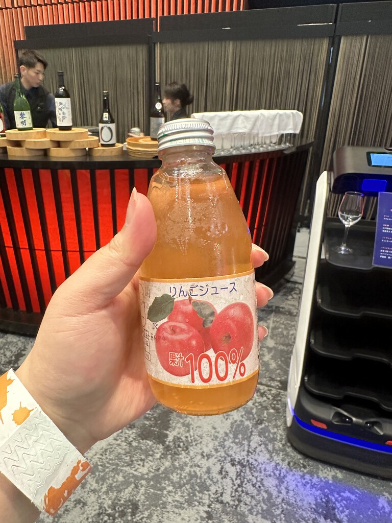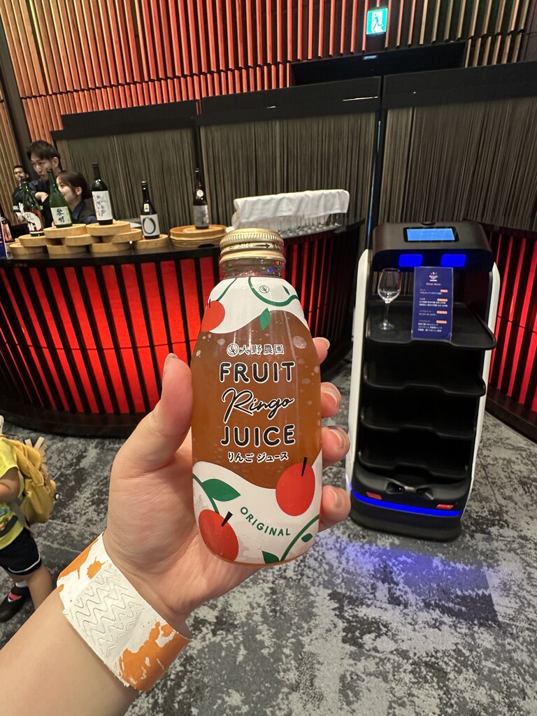 BARエリアにはご当地ドリンクなども用意されていたので、「福島県鏡石町 鏡石りんごジュース」と「福島県石川町 大野農園 りんごジュース」の2種類をいただいてみました。どちらも甘い果汁ジュースで、鏡石町のほうがわずかに果肉を感じられました。