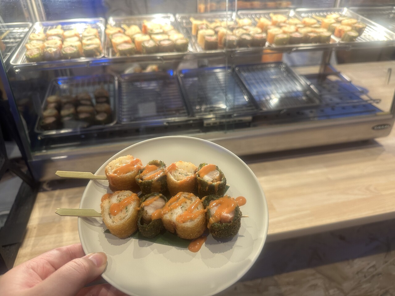 長崎県の「長崎の郷土料理“ハトシ”とチキンのロール串」は、肉感は柔らかくふんわりとしていて、甘みの中にあっさりとした辛さを感じるソースがかかっていました。片手で手軽に食べれる串系というのもうれしい!