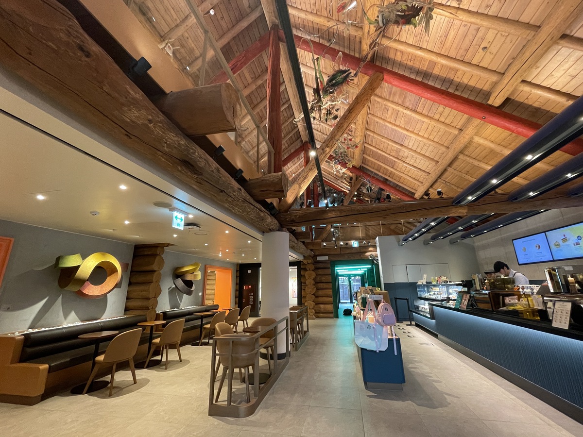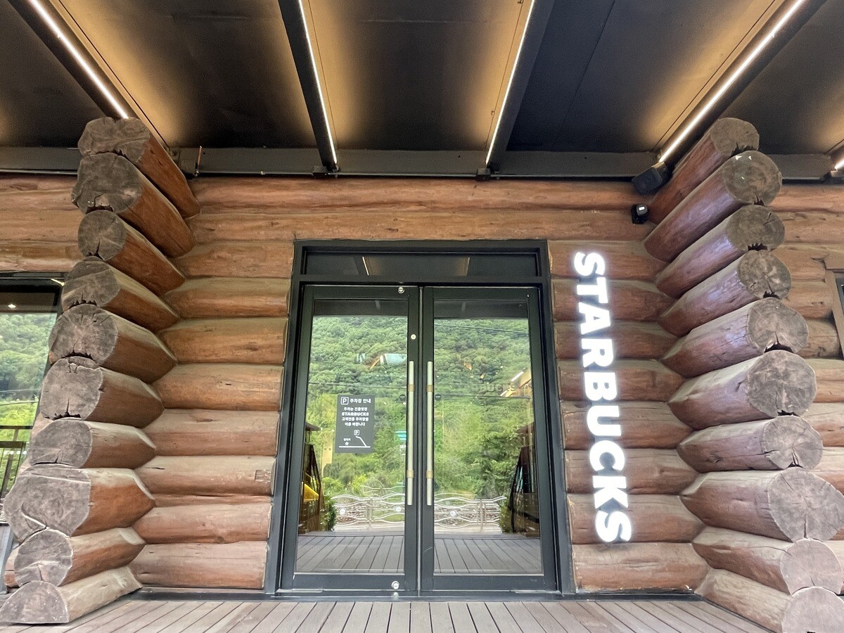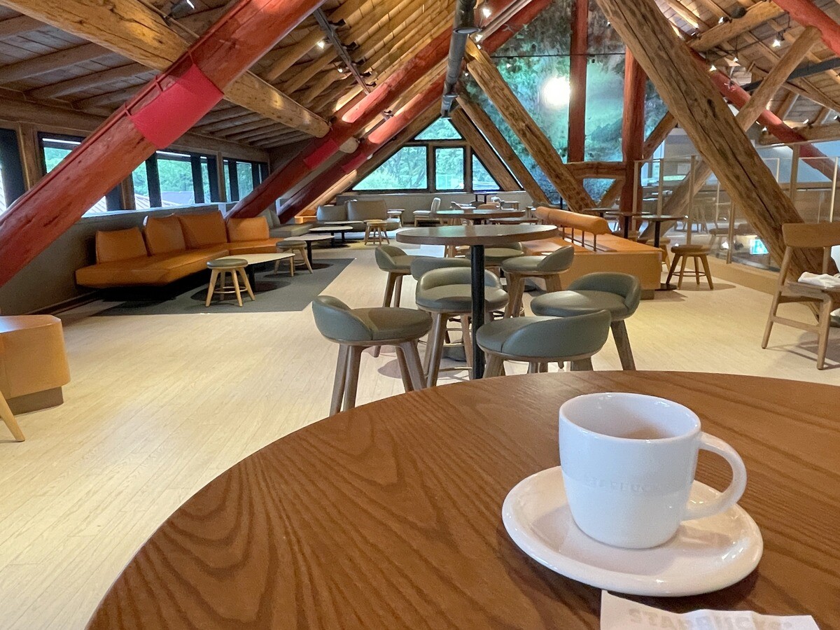 緑豊かな場所に、丸太小屋をそのまま活かしたスターバックスというのも、なかなか特徴的。車が便利なのもあり、店舗の裏に駐車場もあった。なお、バス停はすぐ近くにある。