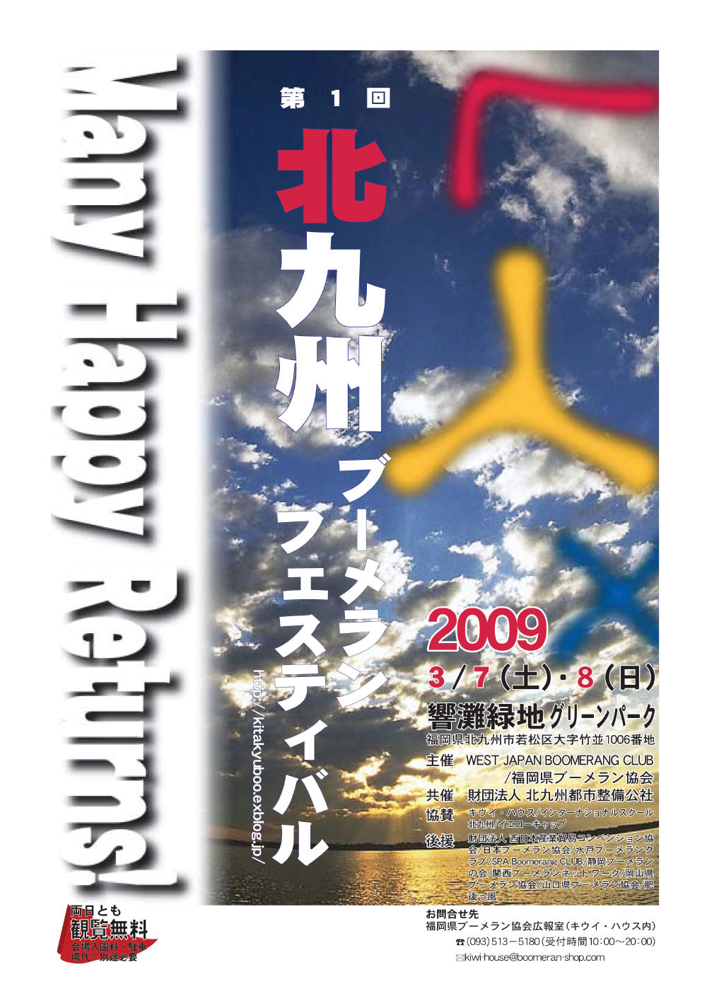現在は、雑貨店「キウイ・ハウス」の経営のかたわら、ブーメランクラブ「WJBC」の代表、福岡県ブーメラン協会の会長、日本ブーメラン協会理事などの肩書きを持つ。今年の3月には、「北九州ブーメランフェスティバル」というイベントも成功させた。また、「ちびっ子ブーメラン教室」を各地で開催し「ブーメラン仮面」として、子どもたちにブーメランを教えている。しかし、ブーメランの世界大会に出場するため店を家族に任せ長期間帰らないこともあるとか。