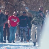 長方形の物体を遠くに投げ飛ばすお祭り「フルーツケーキ投げ大作戦」